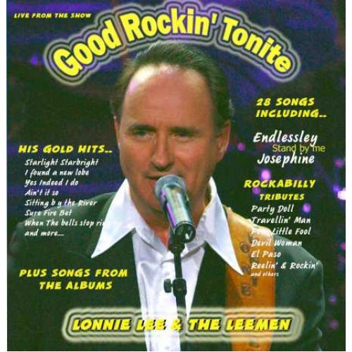 Lonnie Lee - st819 Good Rockin Tonight. This album is the show he presented 2003-2004. 33 great songs including his own hits, celebrations of the great songs of Johnnie Ray and trips back to the days when Rockabilly ruled the hit parades. The Leemen provide the music and vocal backings and it is a full on ride through the era many call the 'Good Times'. Excellent live production and liner notes. A true representation of Lonnie as he is today.