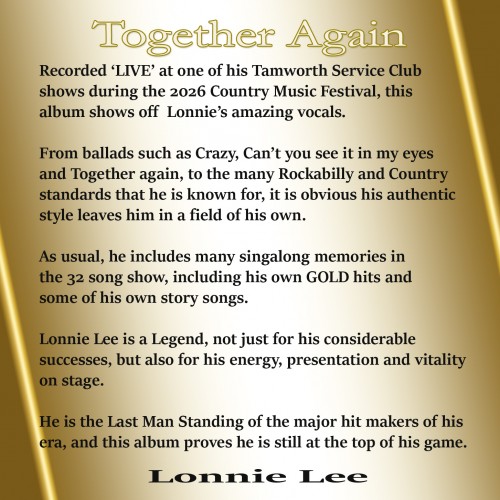Recorded ‘LIVE’ at one of his Tamworth Service Club shows during the 2026 Country Music Festival, thisalbum shows off Lonnie’s amazing vocals.